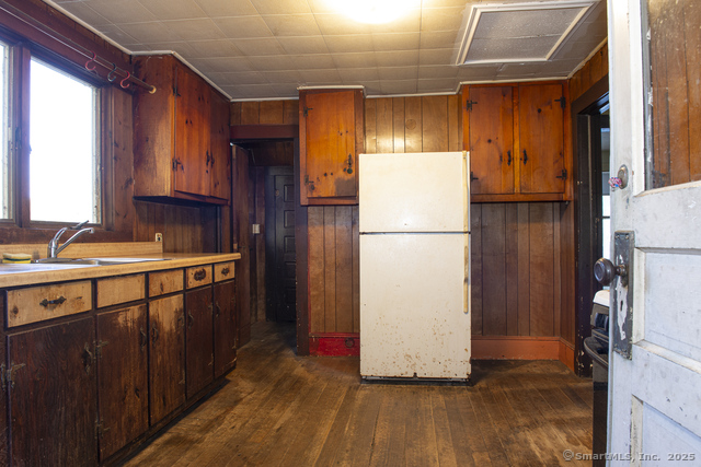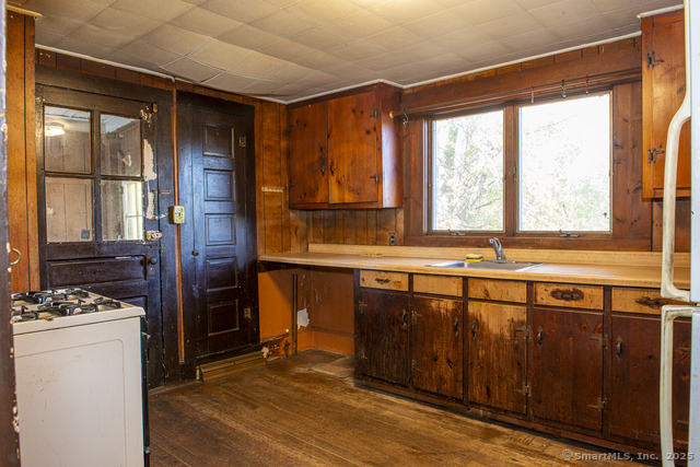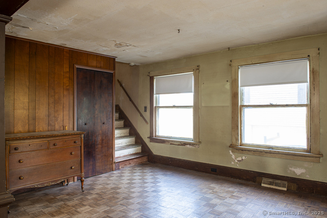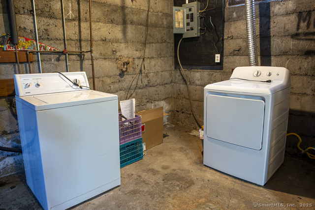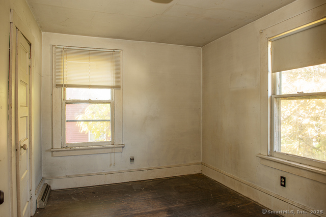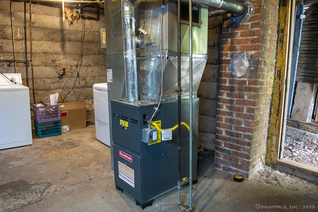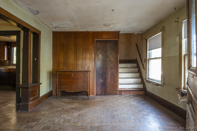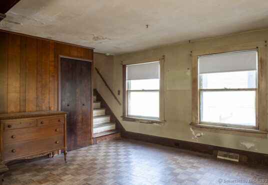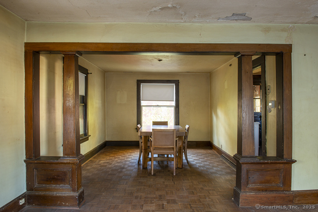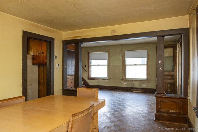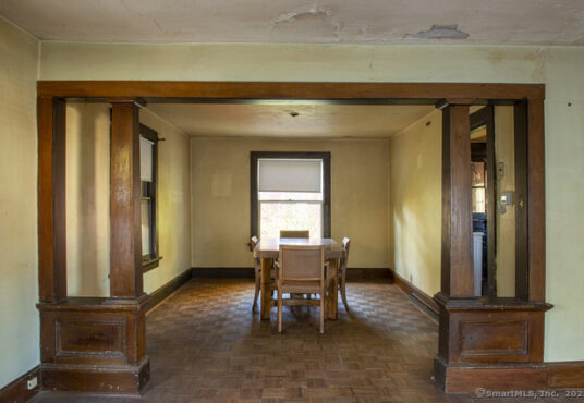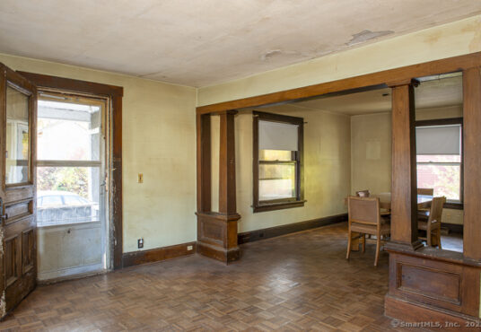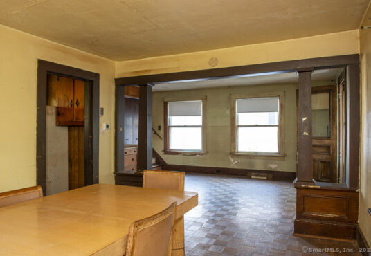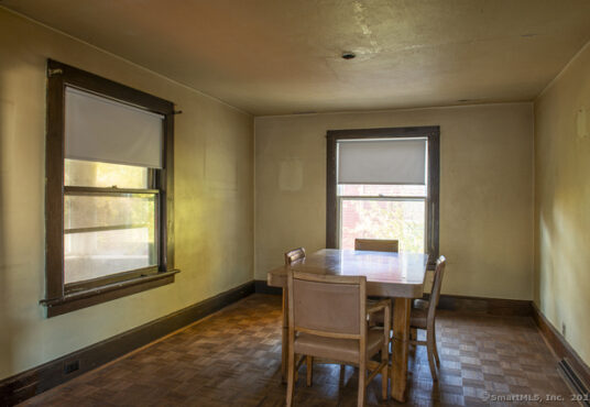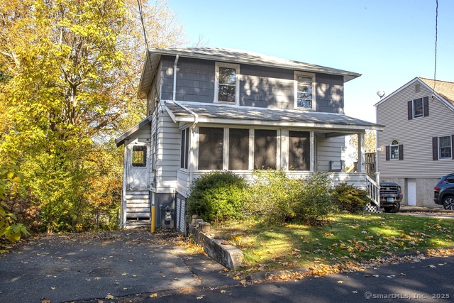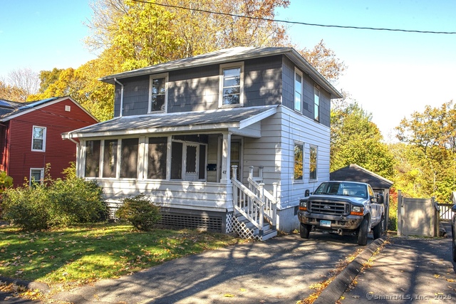Charming colonial located in the heart of the Forestville section of Bristol. This house has lots of features including a screened-in porch, 2 driveways, fenced yard, detached garage, gas heating and more. Large windows let in lots of natural lighting. The living room/dining room area has parquet flooring. There are 3 spacious bedrooms, 1.5 bathrooms, and the unfinished basement has tall ceilings and a walkout door to the back yard. Conveniently located near highways, amenities, and restaurants, but tucked away in a neighborhood setting. Newer gas furnace and gas water heater. Good bones, needs updating. Agent is related to owner. Sold as is.